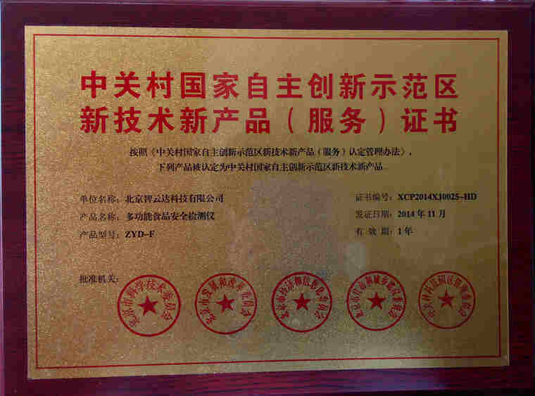 北京智云達科技股份有限公司自2005年開始從事食品安全快速檢測產(chǎn)品的研發(fā),設有專門的研發(fā)機構(gòu),建立了一支以食品安全檢測、化學分析、計算機軟硬件以及光學儀器開發(fā)為主的,由多名博士、碩士為核心的高科技人才隊伍。研發(fā)人員具有較深的理論造詣和豐富的實踐經(jīng)驗,是前沿專業(yè)技術(shù)和應用實踐高度結(jié)合的研發(fā)隊伍。同時,通過與中國農(nóng)大食品學院、北大化學學院、國家糧食局標準質(zhì)量中心、疾控中心等高校、科研單位的教授、專家的廣泛合作,研發(fā)出六大系列食品安全快速檢測產(chǎn)品:食品安全快速檢測試劑盒、檢測箱、食品(農(nóng)產(chǎn)品)檢測儀器、干化學試紙、獸藥殘留膠體金快速檢測卡及抗生素檢測試劑盒。公司目前已取得各種專利共18項,以及26項計算機軟件著作權(quán)登記證書,擁有6大類400余種產(chǎn)品及技術(shù)。      尤其值得一提的是,在